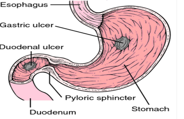 आमाशयका भित्तामा भएको इन्फ्लायिसन (सुन्निएर रातो तातो भएर दुख्ने समस्या) भने आमाशयका भित्ताको श्लेष्म झिल्ली च्यातिएर घाउ भएको अवस्थालाई भने ग्यास्ट्रिक अल्सर भनिन्छ। ग्यास्ट्रिकको प्रारम्भिक अवस्था हो भने अल्सर त्यसैको विकराल रूप हो।